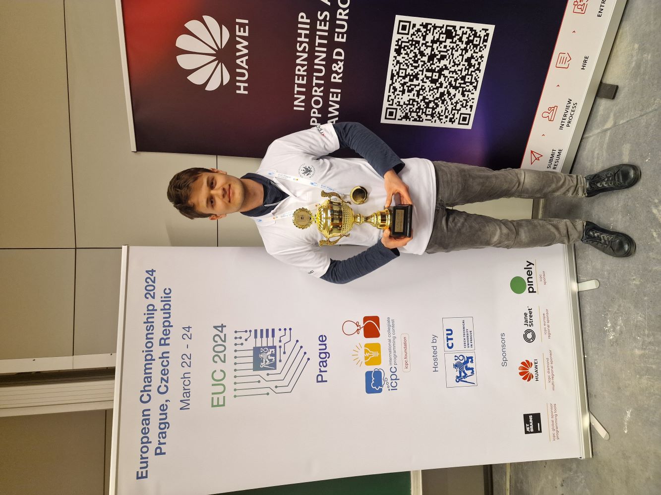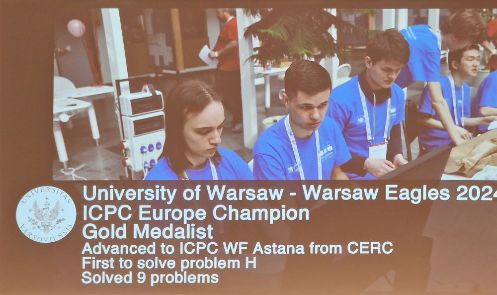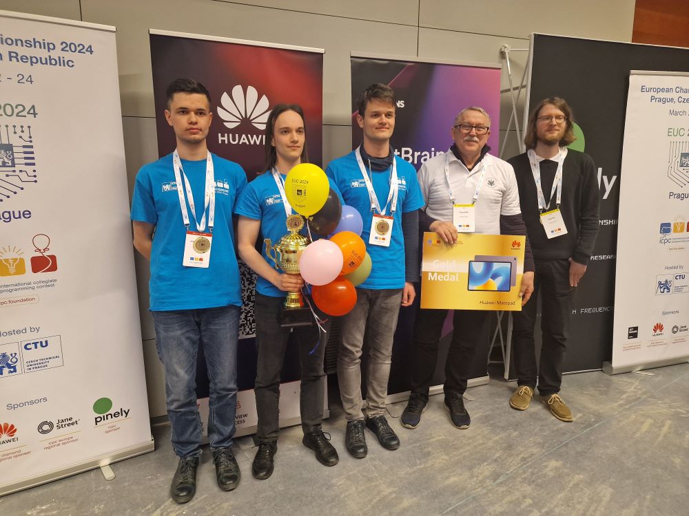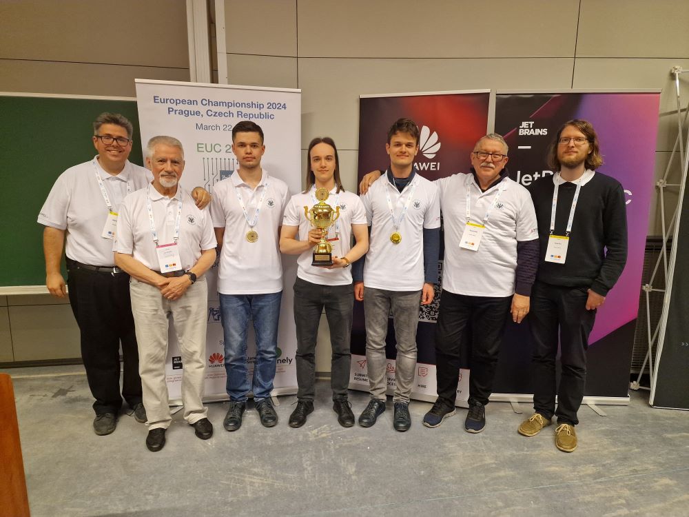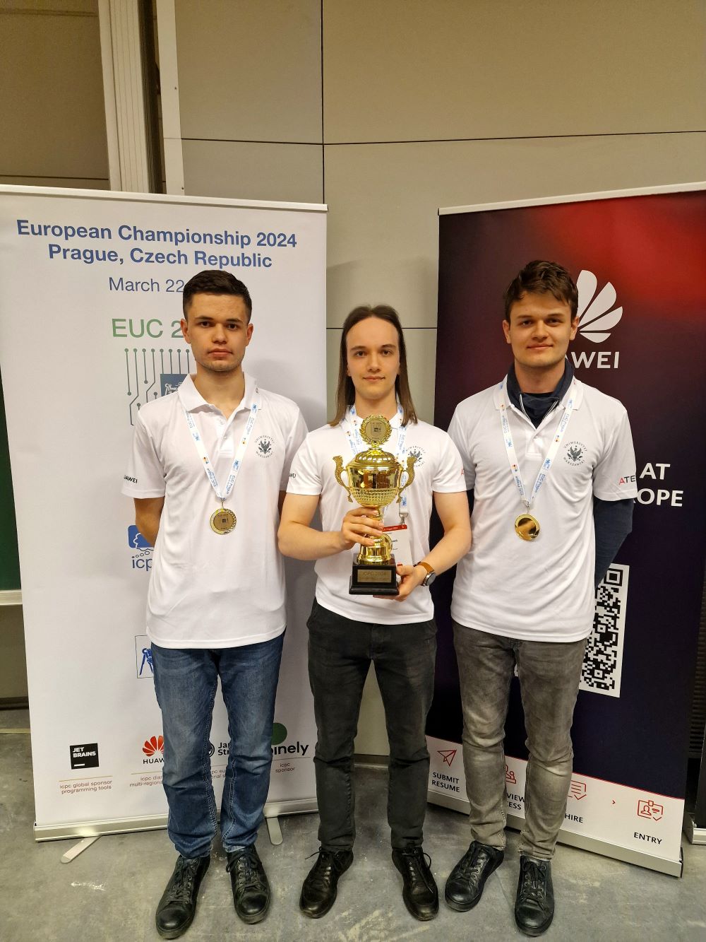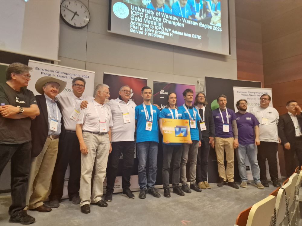 W dniu 24 marca 2024, w Pradze, odbyły się I Akademickie Mistrzostwa Europy w Programowaniu Zespołowym. Mistrzostwa są częścią Akademickich Mistrzostwa Świata w Programowaniu Zespołowym - najstarszego i najbardziej prestiżowego światowego konkursu informatycznego, rozgrywanego od roku 1977. W tegorocznych mistrzostwach Europy wystartowały 52 drużyny, reprezentujące najlepsze uczelnie kształcące informatyków z krajów podzielonych na cztery regiony: południowo-wschodni, środkowoeuropejski, północno-zachodni i południowo-wschodni, obejmujące swoim zasięgiem całą Europę, bez Białorusi i Rosji. Po zawodach regionalnych, które odbyły się na jesieni, do zawodów w Pradze awansowało po 13 najlepszych drużyn z każdego regionu, po co najwyżej jednym zespole z jednej uczelni, poza sporadycznymi, regulaminowymi wyjątkami, pozwalającymi na start dwóch zespołów z jednej uczelni. W tegorocznych mistrzostwach znakomicie wypadły zespoły z regionu środkowoeuropejskiego, z których cztery znalazły się na miejscach medalowych - przyznano jeden złoty medal, dwa medale srebrne i trzy medale brązowe.